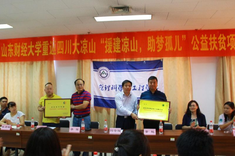 2016年9月21日上午10时,山东财经大学管理科学与工程学院“三梦”公益实践团队重返四川省凉山彝族自治州“支援凉山建设,助梦彝族孤儿”第四期项目总结暨报告会于燕山校区逸夫楼610成功举行。本次报告会由管理科学与工程学院党总支副书记朱翠珍主持,山东财经大学校团委书记刘奇耀,管理科学与工程学院党书记李军、团委书记张贞梅、辅导员孙智凝和冯婧以及爱心企业代表和山东电视台媒体记者出席,“三梦”公益团队全体队员参与。