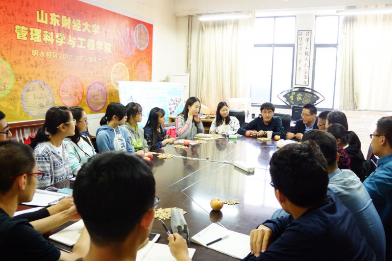 5月15日晚,管理科学专业应届毕业生交流会在明水4211召开。出席本次会议的有15级辅导员樊庆臣、冯婧,12级毕业生康国栋进行了经验分享,15级学生共同参与并聆听了此次会议。