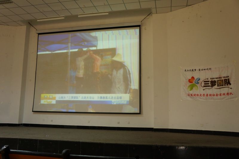 为让更多人帮助到三梦,帮助大凉山的孩子们,王洪飞号召观众为三梦团队微信投票。他总体介绍了三梦团队沾满血泪的支教生活,播放了出发之前关于大凉山的视频,通过详细的团队介绍,展现了三梦团队的雄厚力量和优秀活力的风貌。大凉山人畜同居,医疗设备严重缺乏,到处是断壁残垣的景象,而三梦团队在艰苦的条件下,依然建立了孤儿校工地并开展课程,展开调研活动,为孩子们送去爱和温暖。他们在捐助了资金,衣物等后,挥泪离开。最后,王洪飞分享了社会实践,大学生活等相关经验,并期望大家多做为大学生活添彩的事。之后,段如如介绍了此次活动为电子商务大赛所做的创意,指出创意亮点邮益卡,以及它的爱心公益等方面的特色,并希望同学们珍惜现在的学习机会。王利东提出了自己对2016年活动的安排,并期待大家的参与。