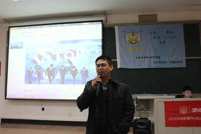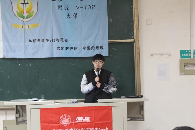 在孙智凝介绍社会实践的相关问题后,13级实创部部长田羽先介绍了V-TOP团队与华硕集团的关系,表明团队参与了华硕志愿者项目,并在此次项目中取得了优异的成绩。随着荧幕上的场景不停转换,观众通过田羽的介绍,了解到V-TOP的足迹,它走进城市,也曾走进农村,也来到敬老院带去知识与爱心。让同学们明白了团队的性质,知晓了团队的历史。随后田羽又向大家点出了社会实践活动中四个重要事项。一,主题应该包含提升自我,宣扬社会正能量。只有活动主题确立,才能稳定活动方向不发生偏移。二,团队成员的刻苦精神决定团队质量,团队的质量决定项目的完成程度。三,大学生团队的宣传活动难以得到大力支持,困难重重,需要多加关注。四,活动总结既要求全面综合也要求以一个人的表达方式进行叙述。通过对以上四点的了解,在场同学也对社会实践活动有了一个全面的认识。