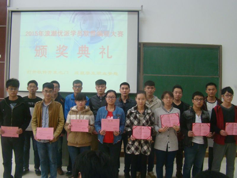 该大赛是增强广大学生的学习能力和提高应对企业招聘的实战经验,同学们进入大三上学期后可去浪潮实训基地进行学习。浪潮实训基地为了提高同学们的学习热情和积极性,举办了此次软件大赛,同学们根据自己编写程序的习惯来选择java开发环境和c语言开发环境,最终得分从程序是否运行正确,编写语言规范性及程序交互性等方面评定,学院刘娟、马嘉兴同学分获二等奖和纪念奖。