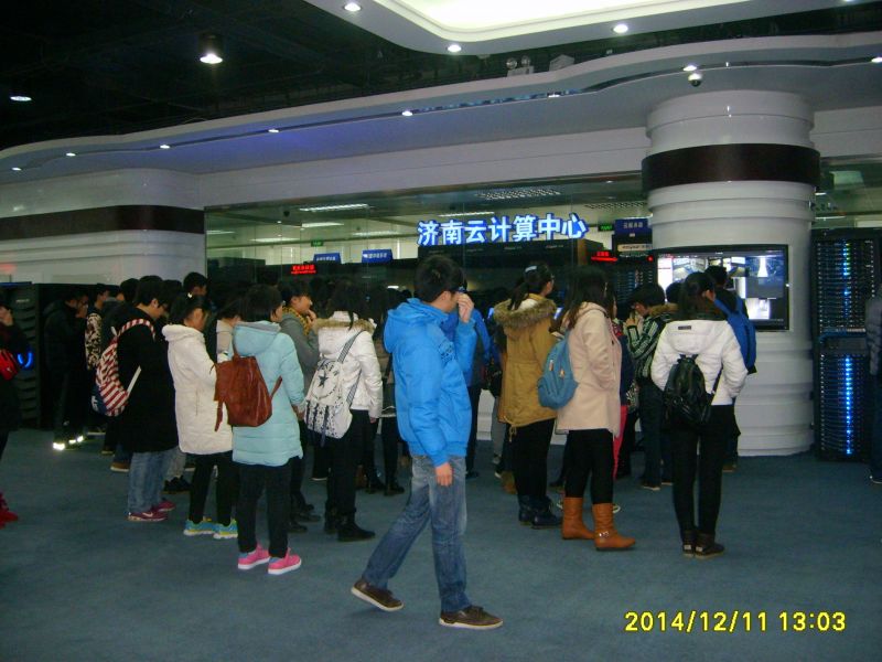 首先,浪潮集团工作人员介绍了浪潮集团在政务云方面的成就,浪潮政务云是国内首个政务云整体外包服务项目,它提高了基础设施资源利用率、降低了电子政务建设和运行维护成本、提高了政务系统部署效率、促进信息共享、为大规模数据整合和交换提供可能。同学们围成一团,聚精会神地听着。接着,工作人员带领同学们认识一批先进云服务机器,其中令同学们最为吃惊的是浪潮的云计算服务平台。它是亚洲最大的第四代云计算中心,可以容纳100万台服务器,同时拥有跨区域的IDC、ISP牌照,具有永远在线、智能监控、自然制冷等三大特点和技术优势。接着,工作人员介绍了几组高新芯片,让同学们更多地了解浪潮集团。