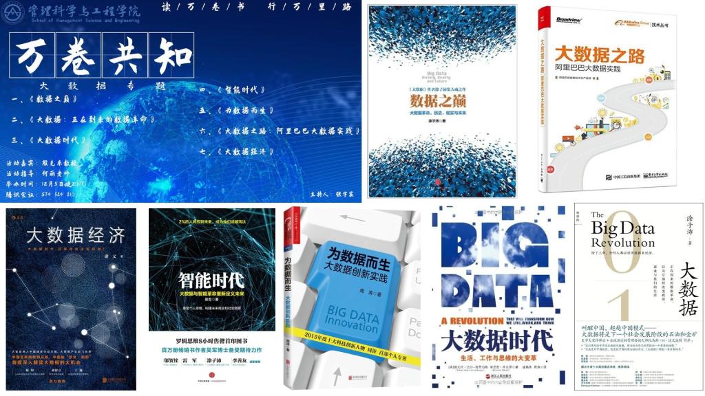 首先,魏义祥、孙振邦、汪思鹏三位同学分享了《数据之巅》,本书是中国数据文化的首倡者涂子沛的集大成之作,全书从美国建国之基讲起,通过阐述初数时代、内战时代、镀金时代、进步时代、抽样时代、大数据时代的特征,系统阐述了美国的数据治国之道;接下来是周治淼、何雨潇、郭雨欣三位同学分享了《大数据》,讲解了数据创新给世界人民带来的挑战与变革;李亚琪、康惠晶、朱璐瑶三位同学分享了《大数据时代》,从三个部分讲述了大数据时代的思维变革、商业变革和管理变革;唐国琛、靳蕊萌、李士玮三位同学分享了《智能时代》,本书阐述了作者吴军对于大数据和机器智能的应用对我们的技术发展、商业和社会的影响;王天一、李璇、邱严瑾三位同学分享了《为数据而生》,介绍了大数据在智慧交通系统、个性化医疗、智慧学校以及金融和商业等领域的中国式创新实践;潘迅达、谢童、刘铭佳三位同学分享了《大数据之路:阿里巴巴大数据实践》,本书为阿里巴巴产品部整理完成的关于阿里巴巴对数据技术、数据管理、数据应用等的认识与实践;张豪、钱萍、刘小玥三位同学分享了《大数据经济》,本书是我国第一本关于大数据的经济学著作,指出了大数据的本质就是社会经济的离散化解构与重构等。