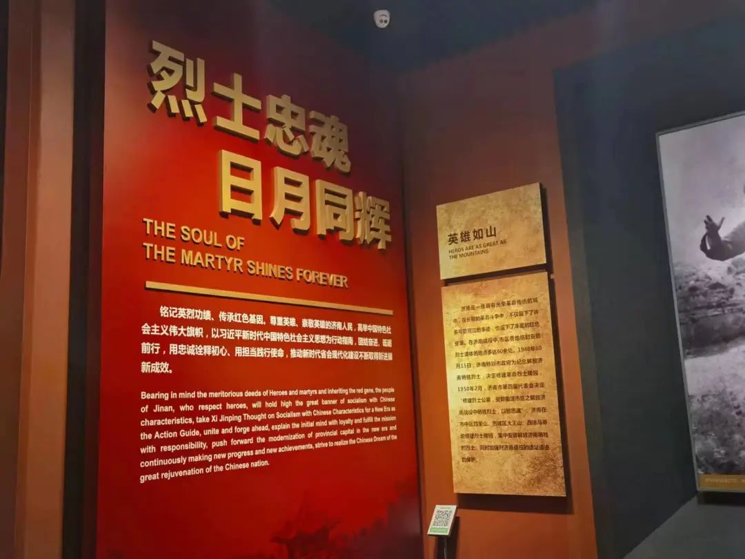 在纪念馆的一个陈列室中,四面墙壁刻上了5000多名先烈的名字,抬头望去,99盏长明灯默默守护先烈们的英魂,在他们对面的是最后一个陈列馆,展示了今天的济南,蓬勃发展,生机昂扬。站在展厅内回望历史,激情满怀,更加深刻的感受到了时代精神传承与发扬之使命。重担在肩,愿在新时代以青春为帆,载雷锋精神信风而行。