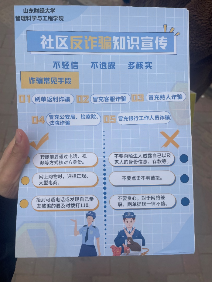 “有一个人的名字,我们大家如雷贯耳,他可以用在很多人的称呼上。这不是一种泛指,而是一种尊重,这个名字就是‘雷锋’”。“雷锋”这两个字已经化为了一种精神陪伴了几代中国人的成长,他是一种随着时代进步而不断发展的与时俱进的精神。为了深刻体会其精神背后深刻的内涵,响应学校的号召,电商2101班深入学校周边的社区进行防诈骗的公益志愿服务活动。