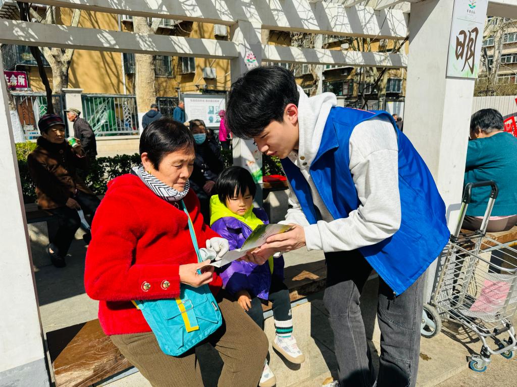 同学们在社区负责人的带领下走进舜玉公园,在舜玉公园广场设立了宣传点,分组向居民普及垃圾分类知识,帮助大家区分可回收物、有害垃圾、厨余垃圾和其他垃圾。志愿者们还向居民发放《垃圾分类指南》,走进附近商户,讲解分类投放技巧,引导大家从“知分类”到“愿分类”。与此同时,同学们在社区负责人的协助下,摆放并整理了垃圾分类垃圾桶,使整个社区的垃圾投放更合理有序。在宣讲的过程中不仅让同学们了解了垃圾分类的基本常识和管理条例,而且提升了社区街道居民的责任感,从“被动执行”到“主动维护”。