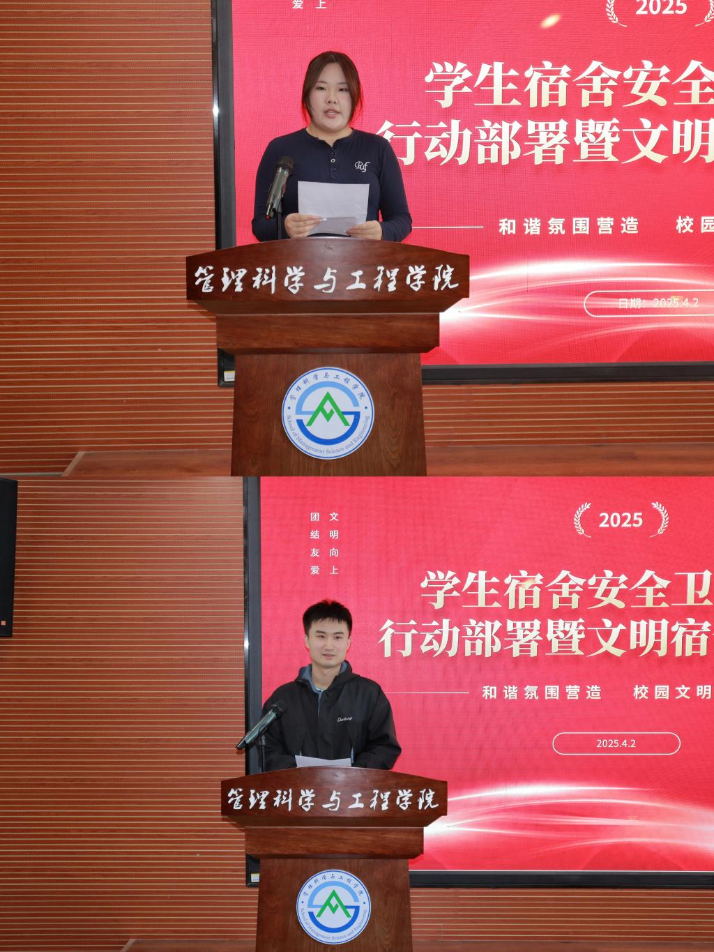 作为获奖宿舍代表,信管2302班的闫嘉琦分享了宿舍管理的成功经验。从合理的值日分工,到严格的安全用电管理,再到高效的集体协作,闫嘉琦同学的发言为其他宿舍提供了极具参考价值的模式,促进了宿舍管理经验的交流。