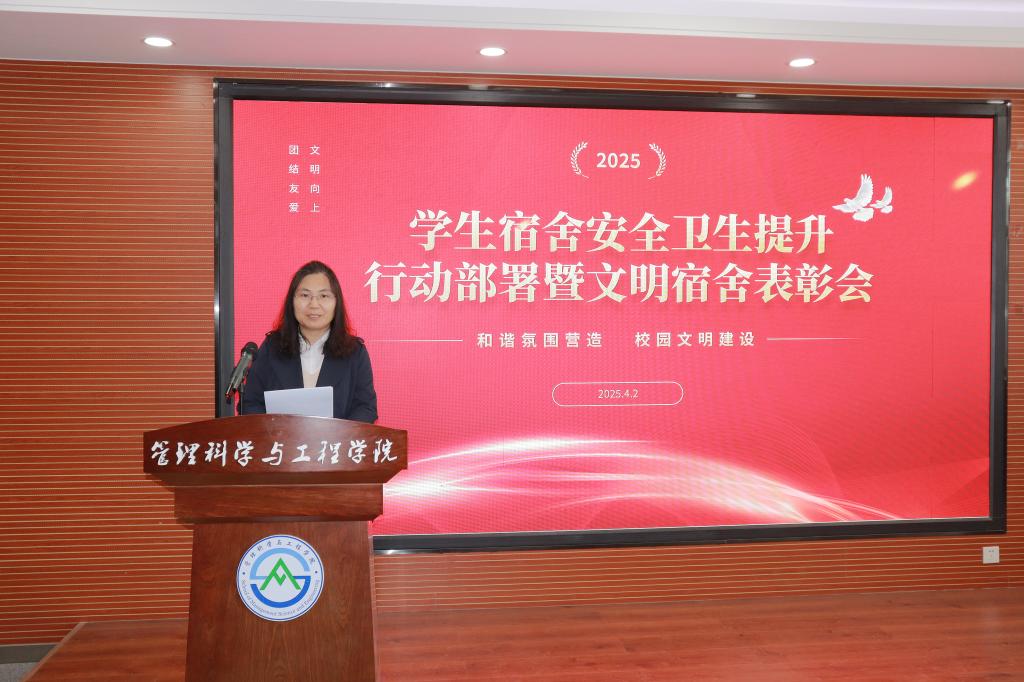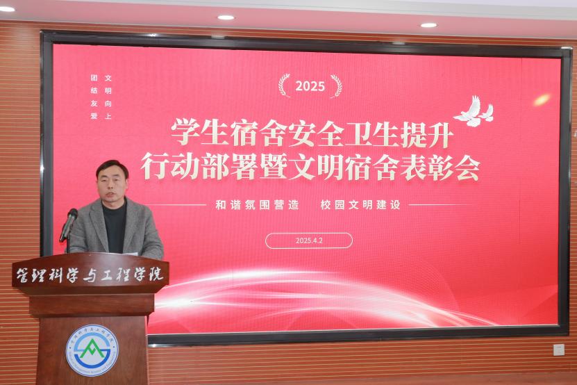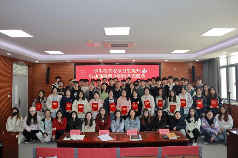 4月2日,学院在章丘校区6432教室,召开“学生宿舍安全卫生提升行动部署暨文明宿舍表彰会”。学院党委副书记刘思锋、学工(就业)办主任王桂月、党委专职组织员兼23级辅导员冯婧、24级辅导员沈健以及获奖学生代表参加。会议由23级辅导员王培信主持。