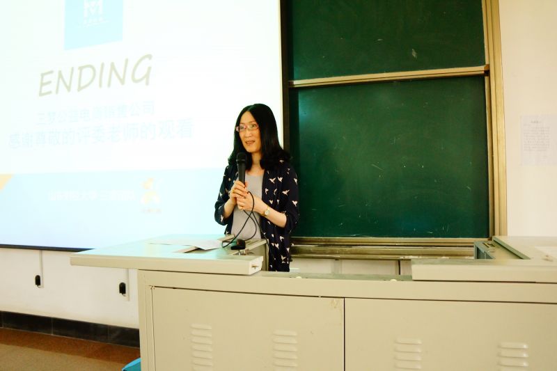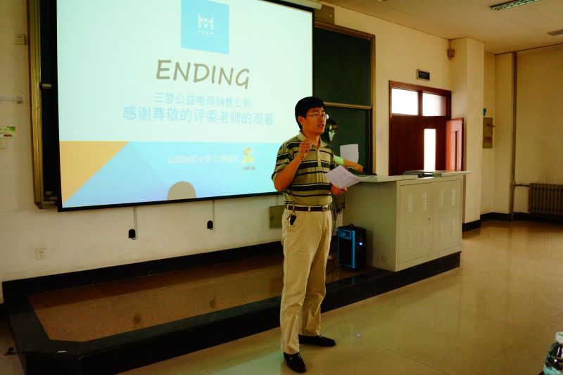 随后,比赛在热烈的掌声中展开。过程中,九支参赛代表队先后登台进行各自的项目汇报,并由三位评委老师进行提问。各个代表队风格各异、特点鲜明,都有着独特的想法与设计,各个团队代表生动的语言风格也为大家留下了极为深刻的印象。汇报结束,“嗨,师傅”团队以汽车售后服务平台的独特创意和精心制作获得了三位评委老师的倾心,夺得桂冠并取得决赛特等奖的好成绩。“离屋”团队和“最后一公里”团队分别以山东省离屋策划、利用农村电商银行解决农村物流最后一公里策划案位居其后,将一等奖收入囊中。“三梦公益”团队、“济南寻味”团队和“果然蔬心”取得二等奖。“短线程乐园游”团队、“二胎专家”团队与“Ulove”取得三等奖。比赛最终,刘晓梅老师、徐世星副书记分别登台讲话,对本次决赛进行了总结。