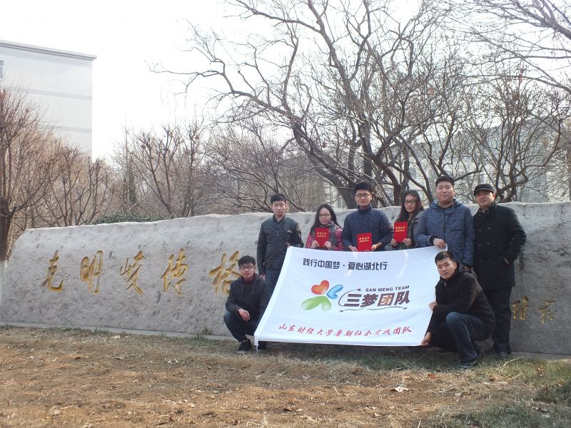 本次“三梦团队”实践活动由管理科学与工程学院辅导员周广春、数学与数量经济学院辅导员张亚萌指导,管理科学与工程学院学生郝向东、崔震、周容宇、数学与数量经济学院鞠琪、王大地和来自会计学院、工商管理学院等学院共19名学生组成。该团队于2014年暑假深入 湖北省荆州市监利县,本着践行社会主义核心价值观的思想,响应“中国梦”的号召,开展了为期20天的以“践行社会主义核心价值观•共圆中国梦”为主题的关爱留守儿童支教帮扶调研活动,在湖北团省委、监利团县委的指导下共同建设“希望家园”项目。帮助当地小学建设了“三梦爱心图书馆”,组织留守儿童开展“共游鄂湘西革命老区”爱国主义教育,深入走访当地两个镇四个村,调研当地留守儿童问题,利用所学的专业知识分析当地经济产业结构,用微博等新媒体传播正能量,让跟多的人关注留守儿童的成长等问题。以实际行动践行宣传社会主义核心价值观,开展意义深刻教育活动,“三梦团队”得到了湖北团省委高度重视,湖北团省委副书记金鹏专程莅临指导,并对团队契合当下的实践主题和意义表示肯定,对团队的精神表示赞扬。