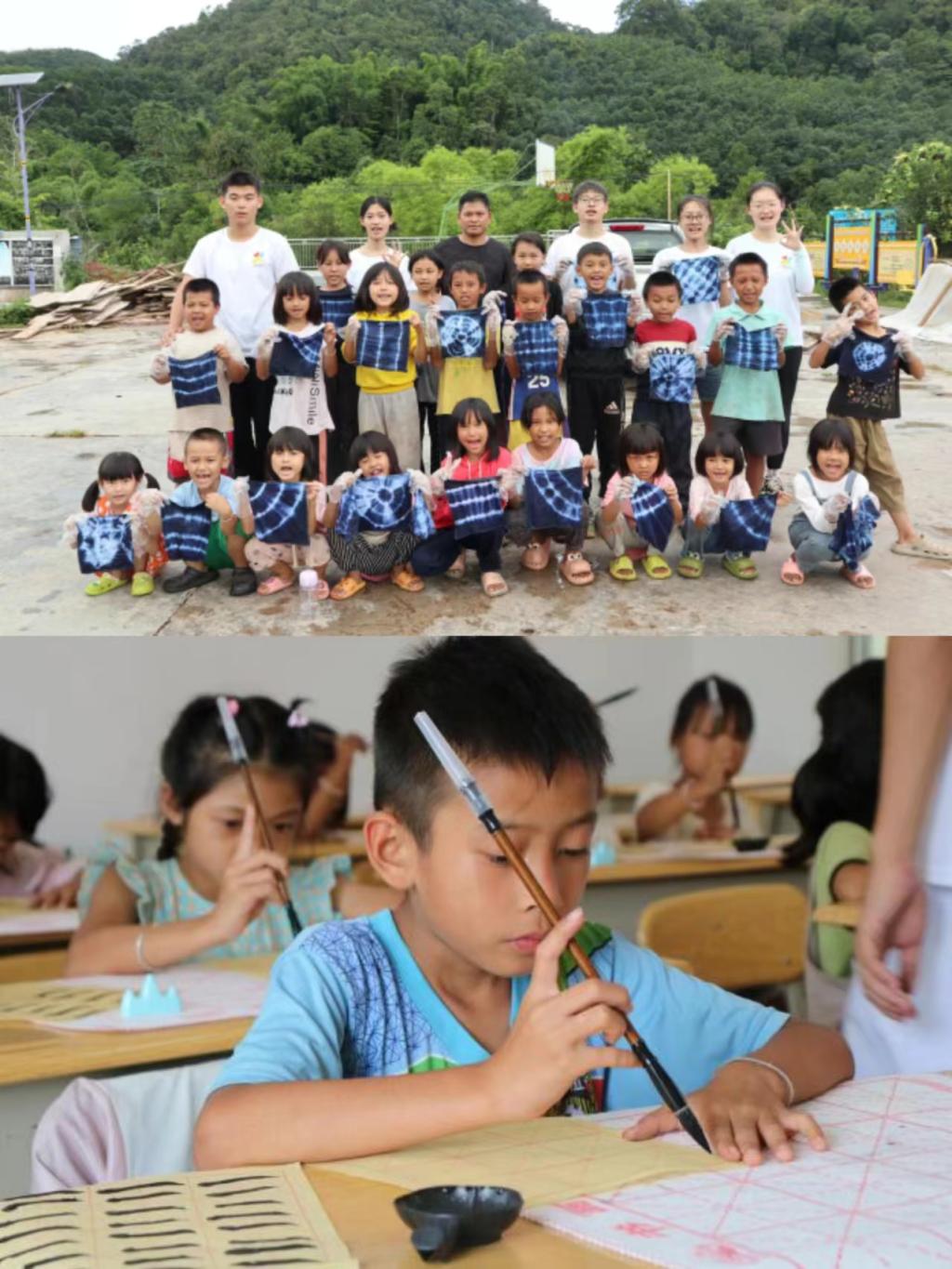 三梦团队的传统文化课堂秉持“传承优秀的传统文化,不在墙上,在于心上,不在嘴上,在于行上”的教学理念,开设了白族非遗扎染体验课与书法课。染色的布料与厚重的笔墨,是中华五千年文化的积淀与传承,是民族自信的体现。