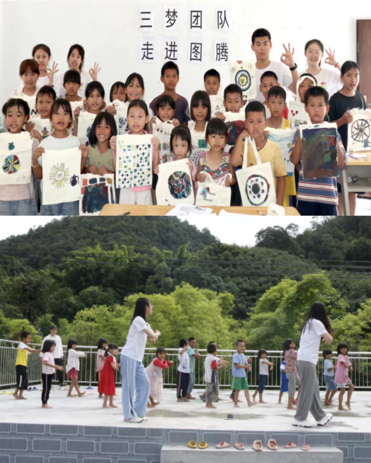 现今,如何创新性地弘扬传统文化值得我们思考与探索。三梦团队成员创新教学内容,将富有民族个性的图腾与帆布包相结合,形成富有民族特色的图腾包;同时,三梦团队还将传统民族舞蹈与热门歌曲相结合,改编成适合孩子们的舞蹈。这些内容的创新让孩子们用真诚的心接纳民族文化,用宽容的臂膀拥抱世界。