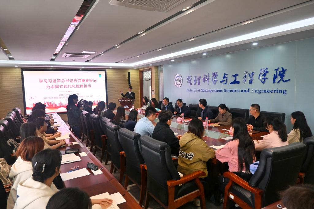 5月7日上午,学校副校长赵奎皓走进我院2022级信息管理与信息系统(软件服务外包方向)2班的主题班会,与同学们一起学习交流习近平总书记对青年的重要寄语,并结合学生成长成才,为同学们送上了一堂生动深刻的思政课。学生工作部、我院负责人出席了相关活动。