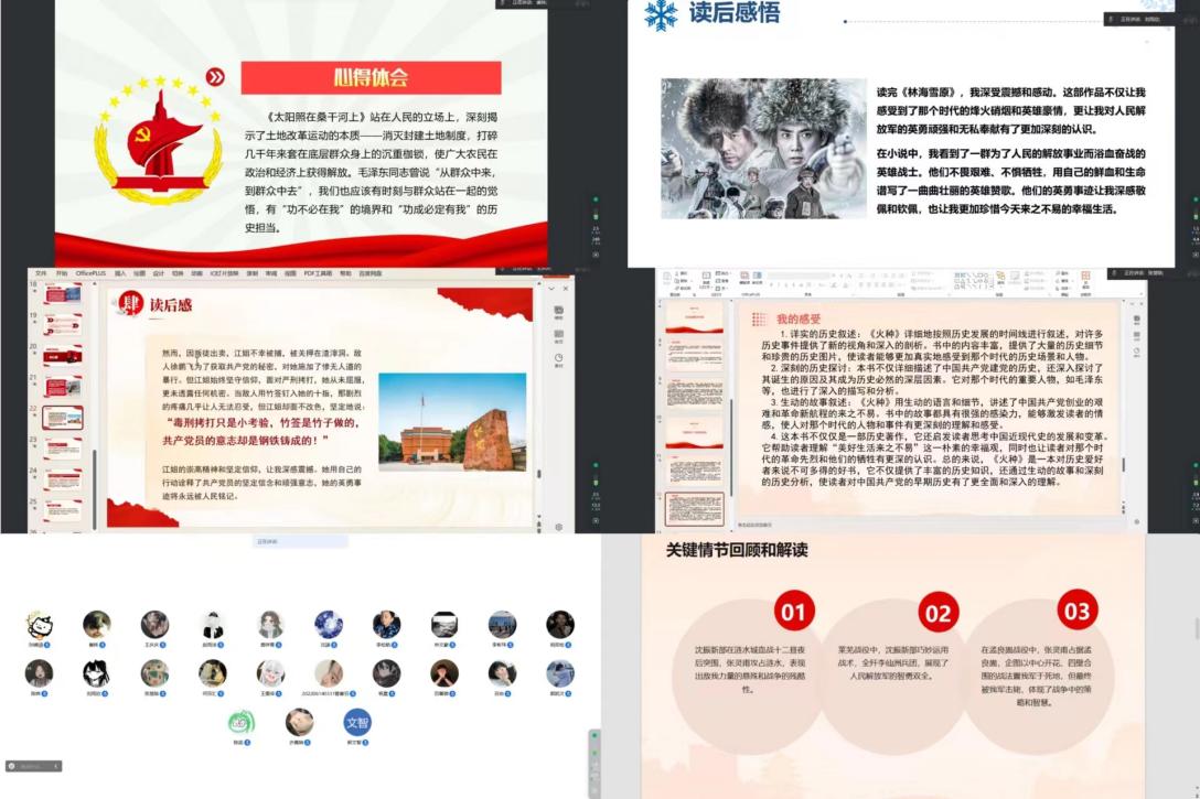 分享会上,同学们紧紧围绕马克思主义经典著作,结合自身实际,畅谈学习心得。信管2201组织委员姜姝同学分享了书目《太阳照在桑干河上》,她提到我们也应该有时刻与群众站在一起的觉悟,有“功成不必在我”的境界和“功成必定有我”的历史担当。电商2201组织委员王庆庆同学做《红岩》的读书分享,她认为无数英雄的牺牲换来了我们今天的幸福生活,我们应当永远铭记在心,五星红旗是他们鲜血的见证。物流2202宣传委员刘雨欣同学在读书会上分享了书目《林海雪原》,她说这本书让我们感受到了英雄们的豪情壮志和无私奉献精神,也将永远激励着我们在人生的道路上勇往直前、不畏艰难。管科2304团支书张楚晗同学分享了书目《火种:寻找中国复兴之路》,让我们深刻理解了中国共产党领导的伟大复兴历程,增强民族自豪感和历史使命感,激发我们的爱国热情。院心服部副部长李松航同学做《红日》的读书分享,他提到我们要铭记英雄事迹,传承红色基因,为国家的繁荣富强贡献自己的力量。