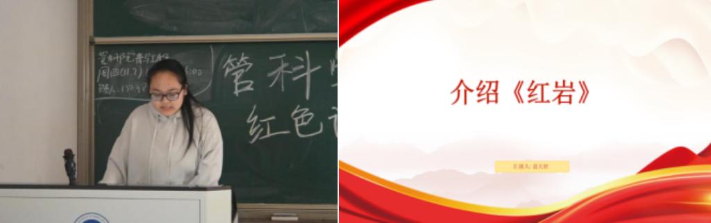 信外2202班的宣传委员刘婧婷分享了《向延安》。她通过讲述地主家少爷金喜从懵懂无知到革命觉醒,再到成长为坚定革命者的心路历程,让在场的每一位同学都深深感受到了革命信念的磅礴力量和革命精神的无价可贵。