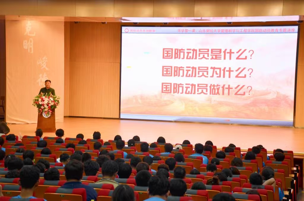 特邀济南市国防动员办公室杜卫东围绕国防动员相关领域知识要点开展国防动员教育讲座,向学院2024级全体新生进行重点宣讲和互动交流,增强了同学们的国防安全意识。