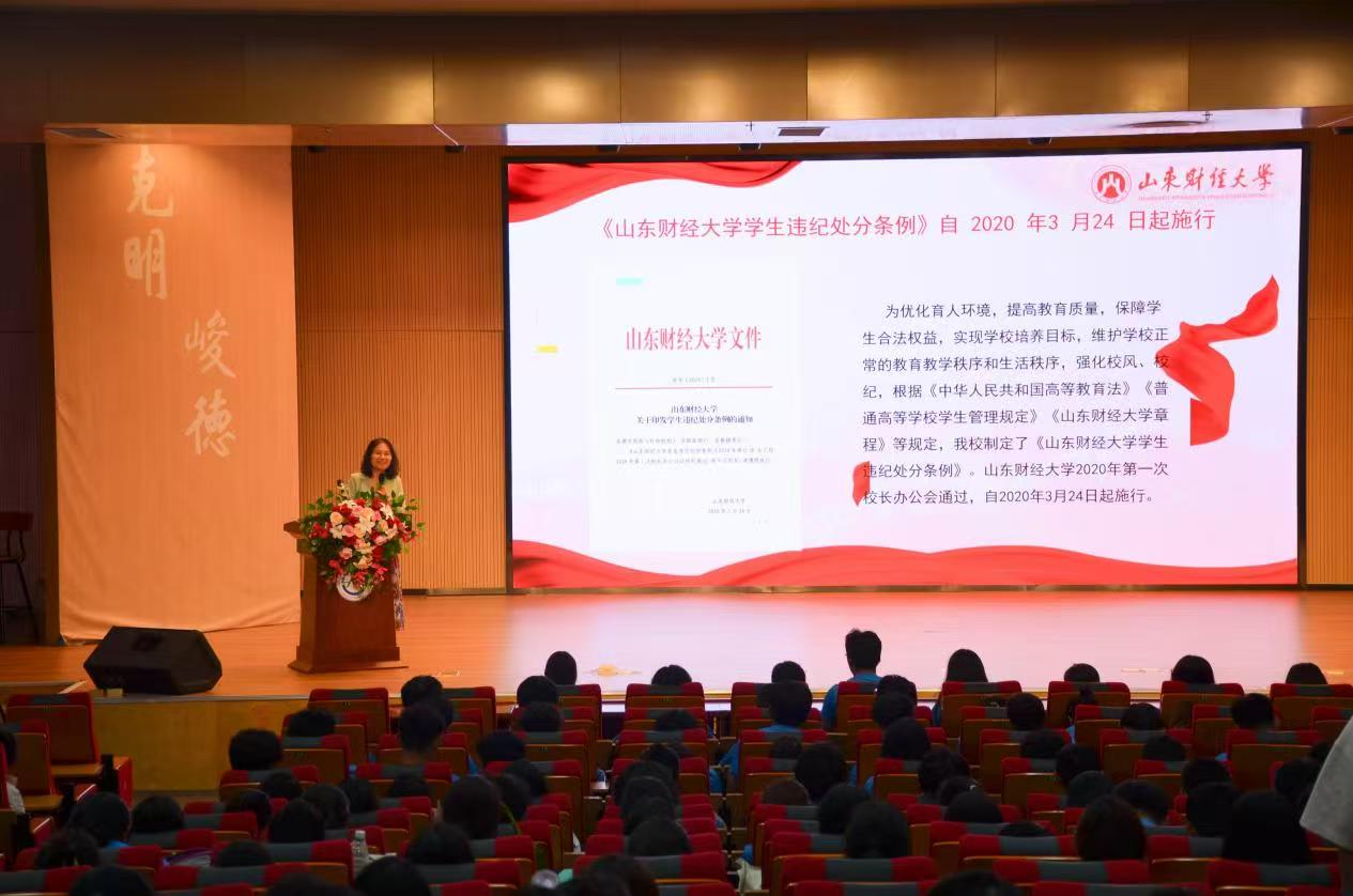 为使2024级新生尽快适应新的学习环境,管理科学与工程学院举办校规校纪学习教育讲座,2024级辅导员王桂月采用互动式教学方式,带领新生深入学习校规校纪。