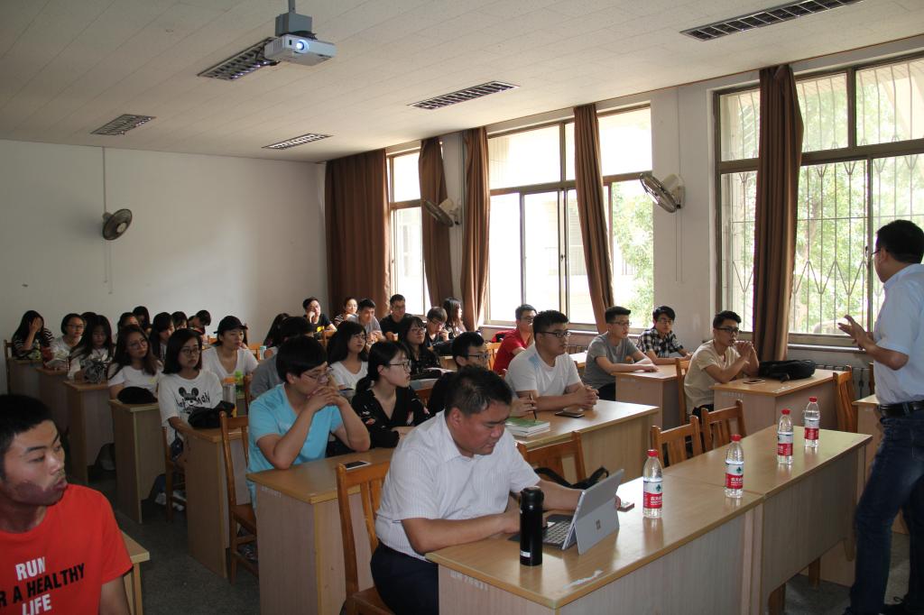 周广春对俩位校友的到来表示热烈的欢迎。曹建介绍了自己毕业以来的职业生涯,从教师到国企职员再到外企职员,到最后的个人创业。他介绍他考研的过程以及研究生生活,希望同学们提高解决问题的能力,坚持解决问题。在创业的过程中,他提出“坚持比创新难”,希望同学们认真思索,选择喜欢的就业方向,坚持自己,干自己的想做的事。而后,刘文东介绍自己的就业过程,希望同学们积累自己,学习更多的知识丰富自己。他对同学们提出表示三点要求,“不要轻易放弃;产品如人品;成败相对而言”。