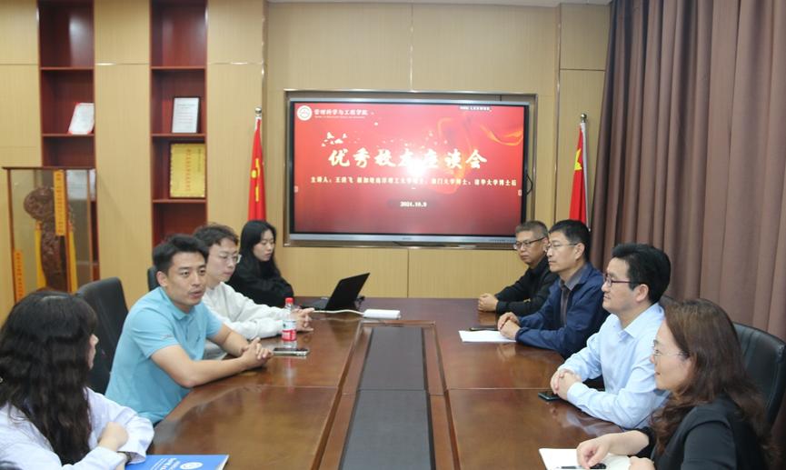 10月9日下午,我院2013级管理科学专业优秀校友王洪飞回母校进行交流座谈,学院党委书记徐世星、院长刘位龙、党委副书记朱翠珍、团委书记兼研究生辅导员何丽、就业办主任孙智凝以及部分研究生参加座谈。
