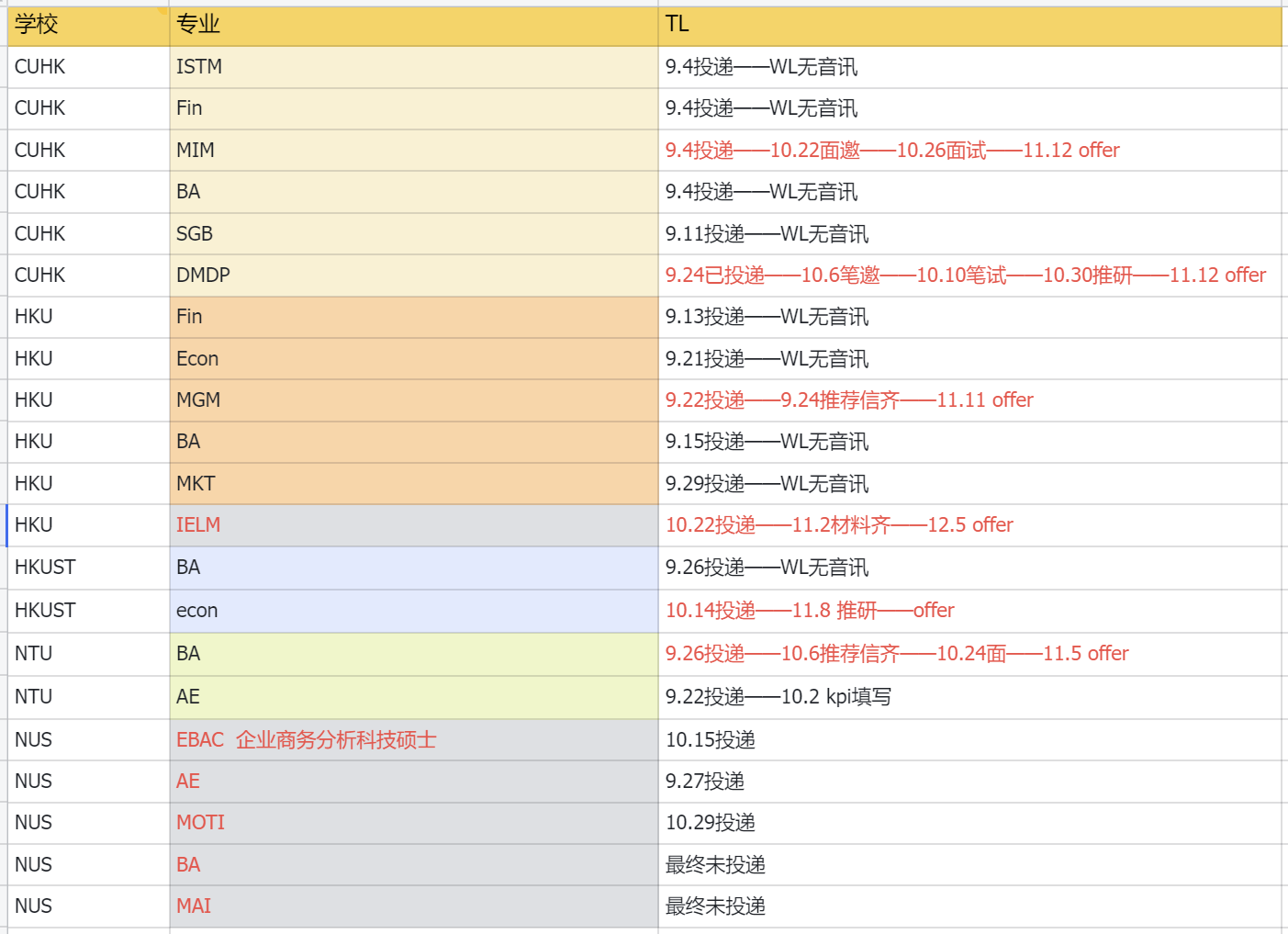 需要特别注意的是,NUS整个时间线都偏滞后,要到25年1月才陆续面试。而此时港三和NTU已经结束大半的录取。我自己也在NUS开始审理前就结束了申请季,最终很遗憾与梦校无缘。因此,特别想去NUS的同学适合与美国院校联申(时间线相似),与香港联申则面临高额留位费问题。