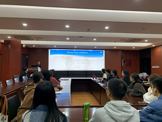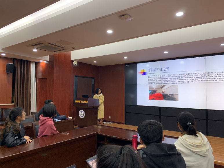 交流会上,王玉美同学从校园生活、导师交流、论文写作等三个方面展开汇报交流。王玉美结合自身在加拿大里贾纳大学的访学经历,重点讲解了在与国外导师的学术交流中如何打破固有的写作模式和思路拓展,表现了科研工作者的执着与严谨。王鹏同学着重介绍了学校及学院关于出国访学的支持政策,并对疫情下的访学交流分享了自己的看法,最后简要介绍了在英国德蒙福特大学访学期间与导师合作的论文及项目。刘亦娇同学于2019年8月至2020年10月赴美国纽约州立大学石溪分校进行了为期一年多的访学,由于疫情原因,需要进行隔离,因此通过腾讯会议参加了此次分享会。她从行前准备、学习与科研、语言与生活、文化交流等方面分享了自己的心得体会,重点讲解了参加研讨班、国际会议以及担任数据挖掘课程助教的经验。张晓红同学在报告中,对加拿大阿尔伯塔大学、电子与计算机工程系的基本情况做了详细的介绍,此外重点介绍了与国外导师在留学期间联合展开的科研工作--基于粒计算的模糊多准则决策模型及其应用,最后还和大家分享了这次访学经历的心得体会。