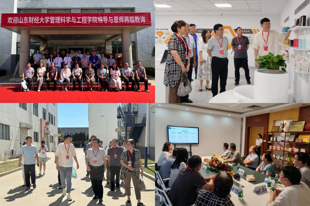 在山东凡熙集团,2002级校友、集团董事长张琦深情回顾了在校期间的学习与生活经历,对母校多年来的悉心培养以及长期支持表达了诚挚的感谢。随后,他带领调研团队参观了凡熙互联网产业园、集团总部及子公司山东婴儿乐股份有限公司,并结合各板块实际运营情况,详细介绍了集团在不同领域的发展态势。座谈会上,崔东峰对校友取得的成就表示祝贺,同时介绍了学院学科专业发展、人才培养和实习就业情况,诚挚邀请张琦及各位校友常回母校交流,共话发展。张琦积极回应,表达了与母校加强合作交流的强烈意愿。他特别提到,集团近年来在互联网科技、大健康领域实现快速发展,对相关专业人才需求持续增长,因此期待能与学院在人才培养、实习就业等方面建立更为紧密的合作关系。双方围绕实习实训基地建设、产学研合作项目开展等具体内容进行了深入交流,并就多项合作事宜达成共识。