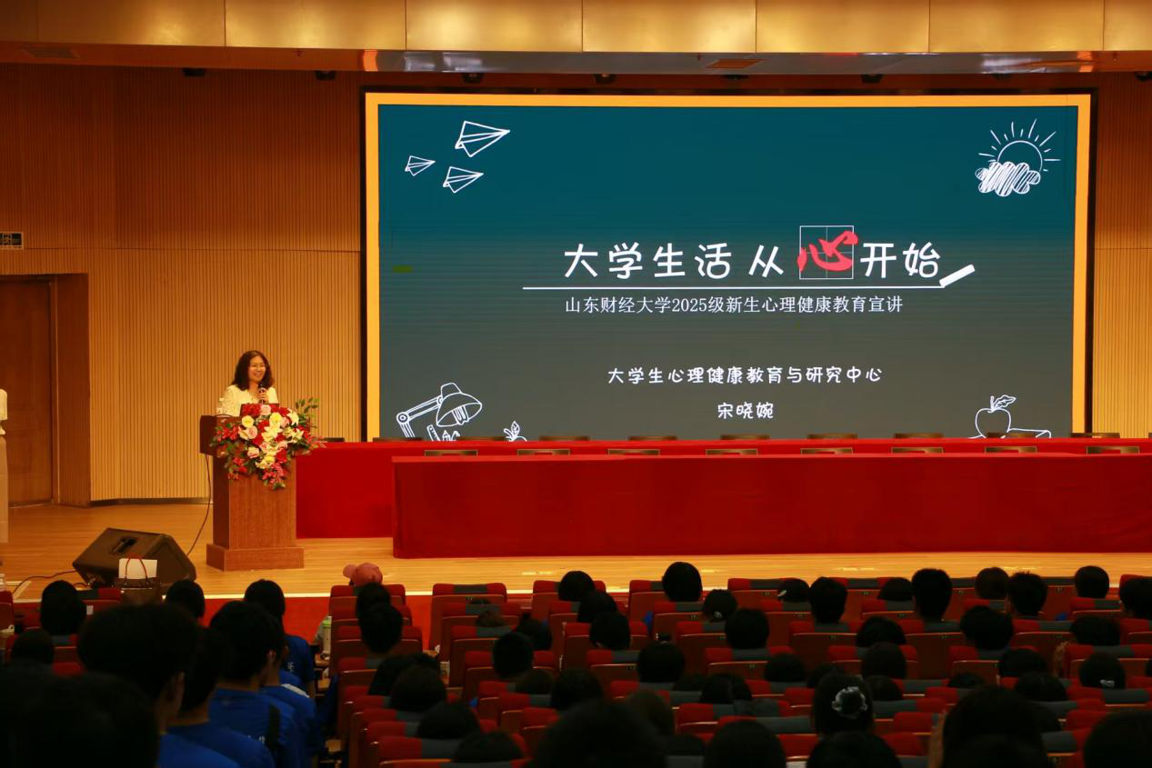 9月2日中午,学院邀请校心理健康教育与研究中心专职教师、国家二级心理咨询师宋晓婉,在章丘校区大学生活动中心,为我院2025级新生开展题为“大学生活从心开始”的心理健康教育讲座。讲座由院学生(就业)工作办公室主任王桂月主持。
