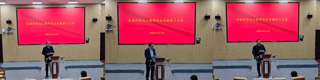 2025年10月16日,我院在燕山校区逸夫楼103报告厅召开全体教职工大会,并开展师德师风专题学习。会议由学院党委书记崔东峰主持。
