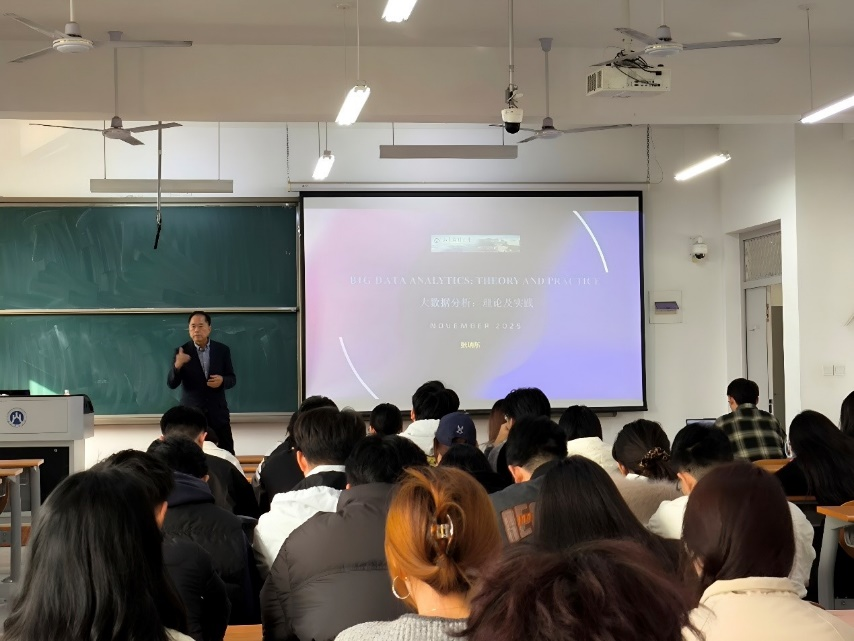 2025年11月14日至15日,我院分别在燕山和圣井校区成功举办《大数据与商业模式创新》国际课程。本次课程由副院长刘政敏主持,特邀美国威斯康星大学奥克莱尔分校(University of Wisconsin–Eau Claire)商学院商业通信与信息系统教授张瑞东主讲,面向2025级研究生、2023级和2024级大数据管理与应用(金融大数据)卓越创新班学生开设。