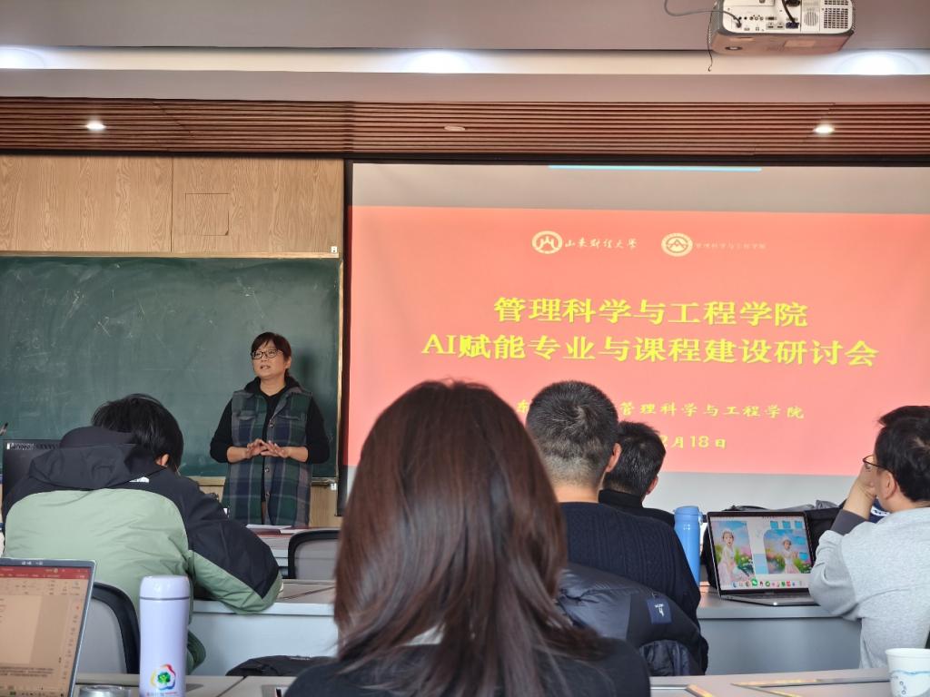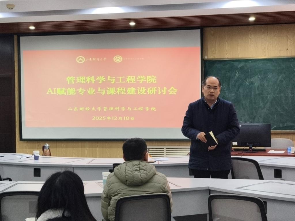 12月18日下午,管理科学与工程学院在燕山校区逸夫楼620成功举办“AI赋能专业与课程建设研讨会”。学院党委书记崔东峰、教学系负责人、学院教学委员会委员和部分教师代表参加了会议,会议由分管教学的副院长马建华主持。