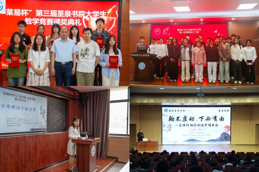 8.圣泉书院工作异彩纷呈。举办第三届大学生数学竞赛和第一届程序设计大赛;组织专家讲座2次,开设企业培训课程1门和国际课程1门;开展“未来之星”学术创新计划的申报和结项;推出“圣泉雅韵”人文素养提升计划、“知行读书会”读书思辨赛、“圣泉新说”兴趣分享会等活动,在提升学生创新实践能力、综合素养以及核心竞争力等方面作用初现。