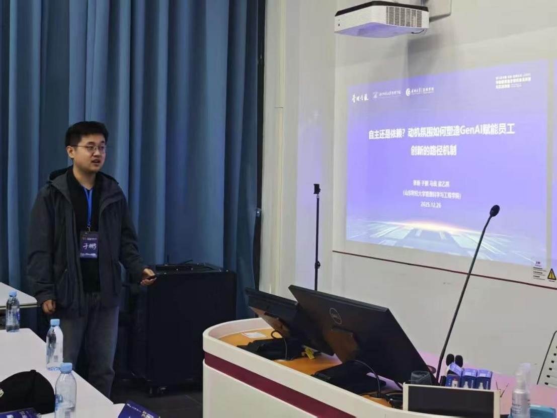 于鹏,管理科学与工程学院管理科学与工程专业2022级博士研究生,师从张新教授,主要从事企业情境中的人—AI交互及数字技术应用与管理领域的研究。博士在读期间,他在《IEEE Transactions on Engineering Management》《Technological Forecasting and Social Change》等国际权威期刊发表或录用学术论文10篇,其中ABS 3星论文3篇、ABS 2星论文2篇、CCF-B类论文1篇,并有ESI高被引论文1篇。他曾经主持山东财经大学研究生创新项目1项,参与6项国家级与省部级课题,其研究成果紧密围绕企业数字化转型中的实际管理难题,为优化AI部署、完善培训支持体系提供了切实可行的管理启示。