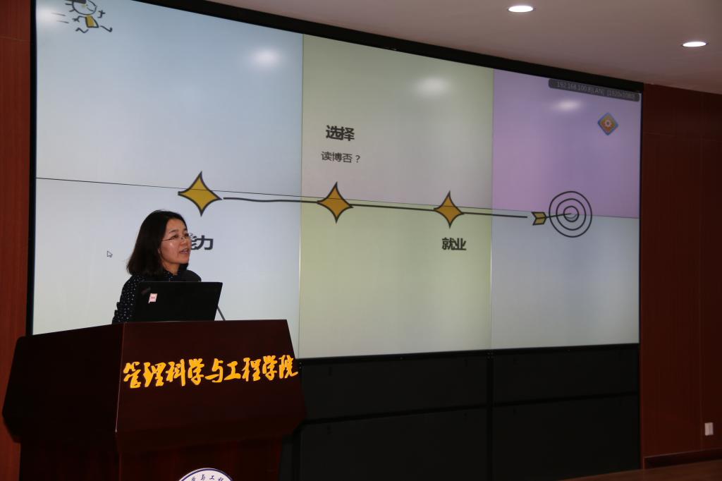 会上,陈爱玲老师从“为什么要读研”、“研究生期间应该做什么”以及“研究生期间应该怎么做”三个问题展开讲述,引导同学们对自己的研究生生涯进行深入的思考、规划。马艳波老师以“研究生求学路”为主题,围绕做学术和研究生发展规划两部分内容与同学们进行交流。马老师特别强调态度对科研的重要作用,希望大家在学术研究过程中能勤探究、重积累,秉持积极乐观的态度。刘政敏老师通过对比分析生动地阐述了本、硕、博的区别,鼓励对学术感兴趣的同学们进一步深造。而后,刘老师对研究生教育、科学素质的培养、研究方向的选择以及参考文献的查找等内容进行了详细讲解。