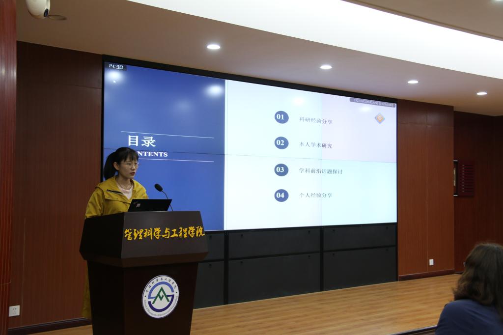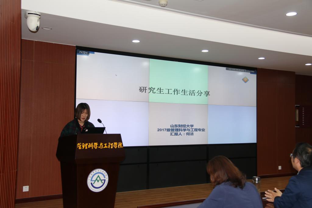 何世繁总结了自己两年来的科研学习经验,以自己的论文为例进行了学术研究的分享,并在过程中强调了积累基础知识和保持良好学术心态的重要性,也建议同学们多参加比赛来锻炼自己。何洁从研究生毕业要求以及科研现状两个方面进行分享,建议同学们在研究生期间,充分利用学校现有资源,积极参与创新计划、学术会议、访学以及暑期学校等活动,在平时要大量阅读文献,做好知识储备。