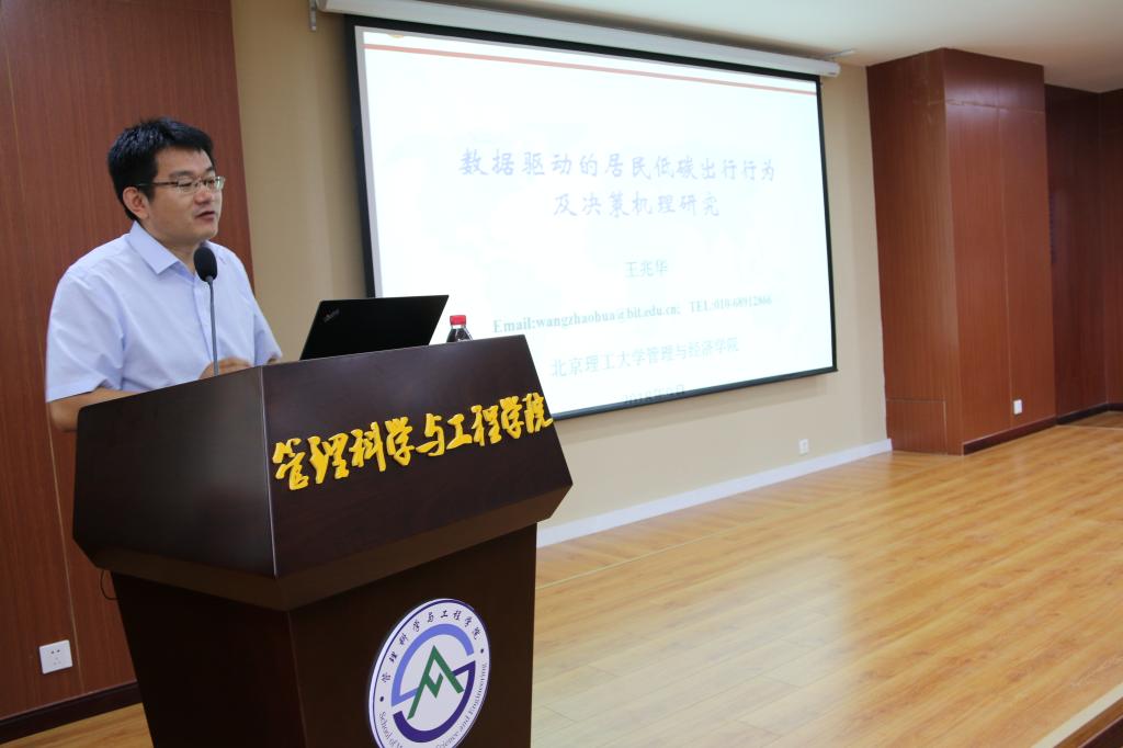 王兆华教授报告的题目是“数据驱动的居民低碳出行行为决策机理”,分析了数据驱动的居民低碳行为研究的新趋势,其次对数据驱动的居民低碳出行进行了研究探索,提出了模式演变影响因素与机理,并对自己的下一步的研究方向作了说明。