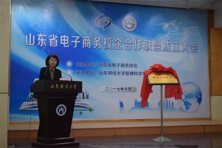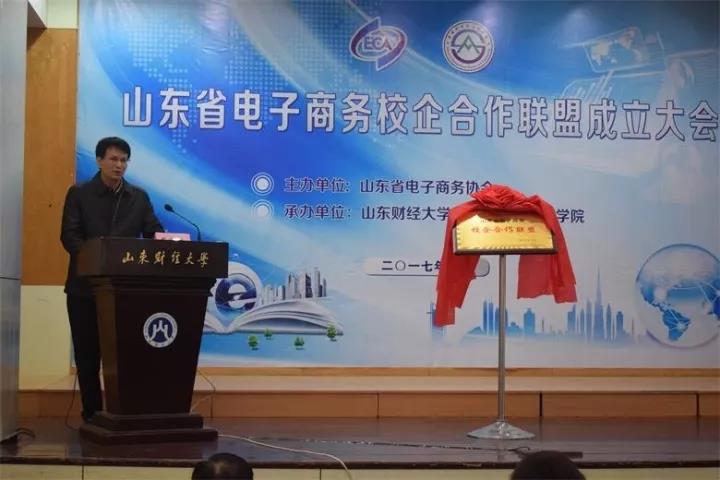 2017年10月26日,山东省电子商务校企合作联盟成立大会在燕山校区召开。副校长胡文波、省经委信息化推进处副处长孟玲、省教育厅科技处副处长曾宪文、学院院长张新、党委书记李军,以及山东大学、山东科技大学、济南大学、聊城大学、山东电子职业技术学院、山东经贸职业学院等30余所高校职业院校的领导和老师们,浪潮集团、开创集团、山东世纪开元、山东景芝、韩都衣舍、颐高电子商务产业园等80余家企业、园区代表与会。会议由山东省电子商务协会秘书长李俭主持。