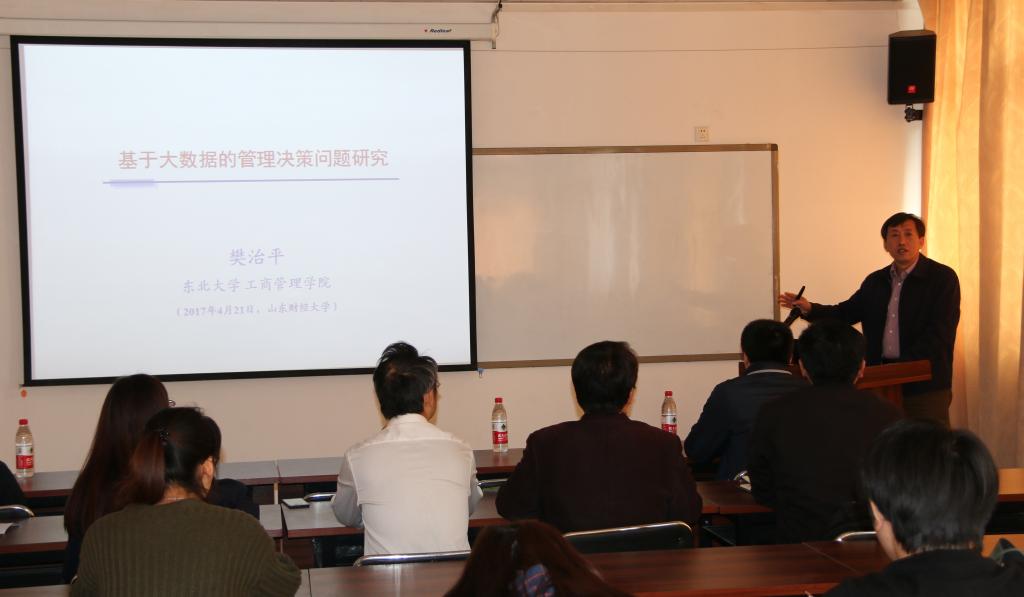 4月21日,教育部长江学者特聘教授、国家杰出青年基金获得者东北大学工商管理学院副院长樊治平教授,东北大学工商管理学院博士生导师刘洋副教授,应邀莅临管科论坛,分别作了题为《基于大数据的管理决策问题研究》和《基于多群体参与者评价信息的大群体决策方法研究》的学术报告。管理科学与工程学院教授委员会主任刘培德教授主持学术报告,学院相关老师及研究生参加此次学术报告。