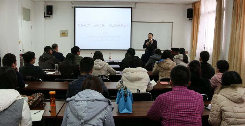 12月5日,西南财经大学经济与管理研究院张吉鹏副教授应邀莅临管科论坛作了题为《调查方法、因果分析与结构模型估计》的学术报告。院长张新、院长助理马建华及学院相关老师、博士硕士研究生参加此次学术报告。学术报告由院长助理刘位龙主持。