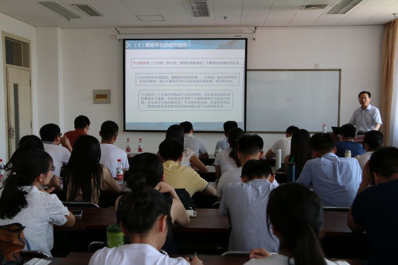 戚桂杰教授主要从三个大方面进行了介绍。首先,戚教授就数据平台定义、本质和组织结构等内容对“数据平台若干问题研究——基于平台经济学的视角”进行详细阐述,新颖的研究视角迅速激起了同学们的求知欲;随后,戚教授分别从要素流平台商业模式的定义和本质、信息流平台商业模式、规则流平台商业模式等几个方面向大家详细介绍了云计算环境下的MIS应用,带领大家站在数据平台的层面去解剖内部的结构,为大家带来了新的科研思路;最后,戚教授引用美国学者贝斯特和卡恩对研究的特性的定义,总结出做好研究的几个关键:数据获取、团队协作、寻找蓝海,鼓励同学们多去阅读期刊论文,培养跨领域的思维模式,从而发现有创意又有意义的研究点。在自由问答时间,大家纷纷向戚教授请教如何处理数据、如何发表论文、如何做好研究等问题,戚教授耐心地为同学们一一解答。