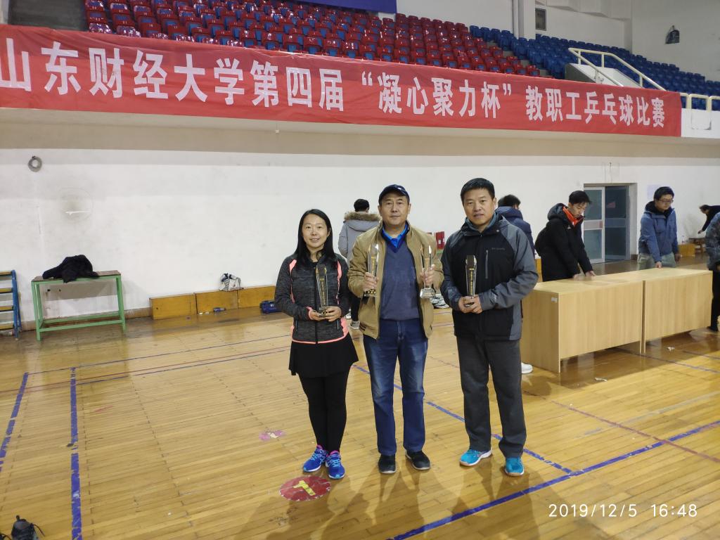 12月5日下午,由校工会主办、体育学院承办、教职工乒乓球协会协办的第四届 “凝心聚力杯”教职工乒乓球比赛在舜耕校区体育馆圆满落下帷幕。