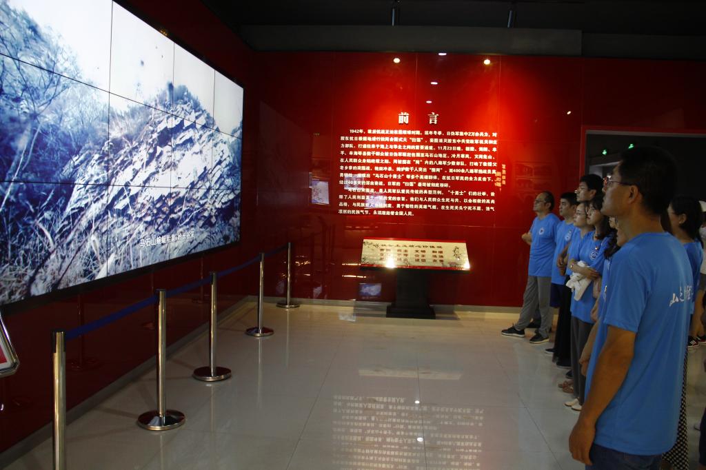 在马石山十勇士纪念馆,文物、照片、影像把师生们的思绪拽回了那段血雨腥风的战争岁月,了解了日本侵略者制造的骇人听闻的马石山惨案,感受马石山十勇士和八路军将士为了百姓的生命安全,舍生忘死、英勇无畏、浴血杀敌的英雄事迹。办公室党支部王培信泪目即兴赋诗,表达了对马石山十勇士的悼念之情:“国弱孰能御外侮,华夏危难唤英雄。缅怀先驱继遗志,扬镰举锤辟新程。”