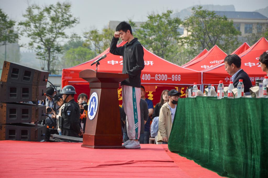 29日上午,嘉宾入场式结束后,全体起立奏唱庄严国歌。学校党委书记王邵军致开幕词,代表学校表达了对运动会顺利举行的美好祝愿;我院16级优秀运动员吕迎港代表全体运动员进行郑重宣誓;接着,伴着阵阵鼓声,我校春季运动会正式拉开帷幕。