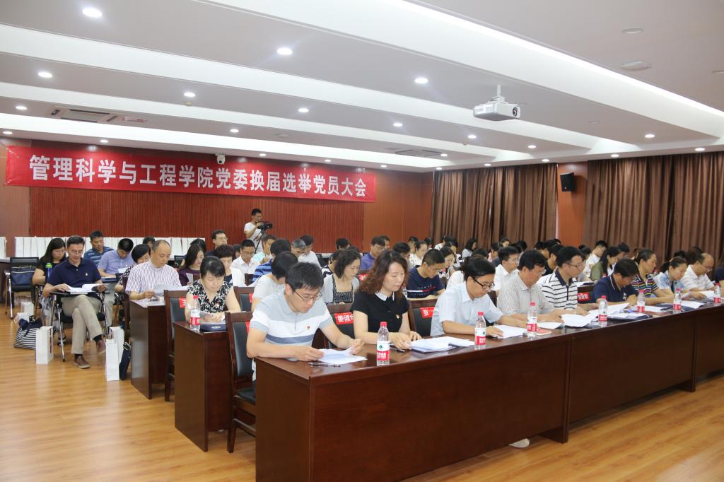 院党委副书记朱翠珍宣读了换届选举党员大会《选举办法(草案)》,大会通过了选举办法,通过了监票人、计票人建议人选,选举产生了管理科学与工程学院新一届党委,李军、徐世星、朱翠珍、陈浩、刘位龙5位当选新一届党委委员。大会还举行了党员重温入党誓词宣誓仪式。