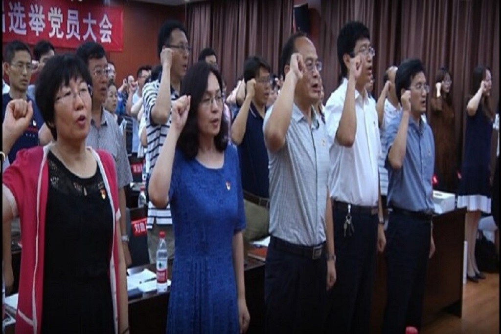下午4时许,党员们起立同唱《中华人民共和国国歌》,大会在雄壮的国歌声中落下帷幕。