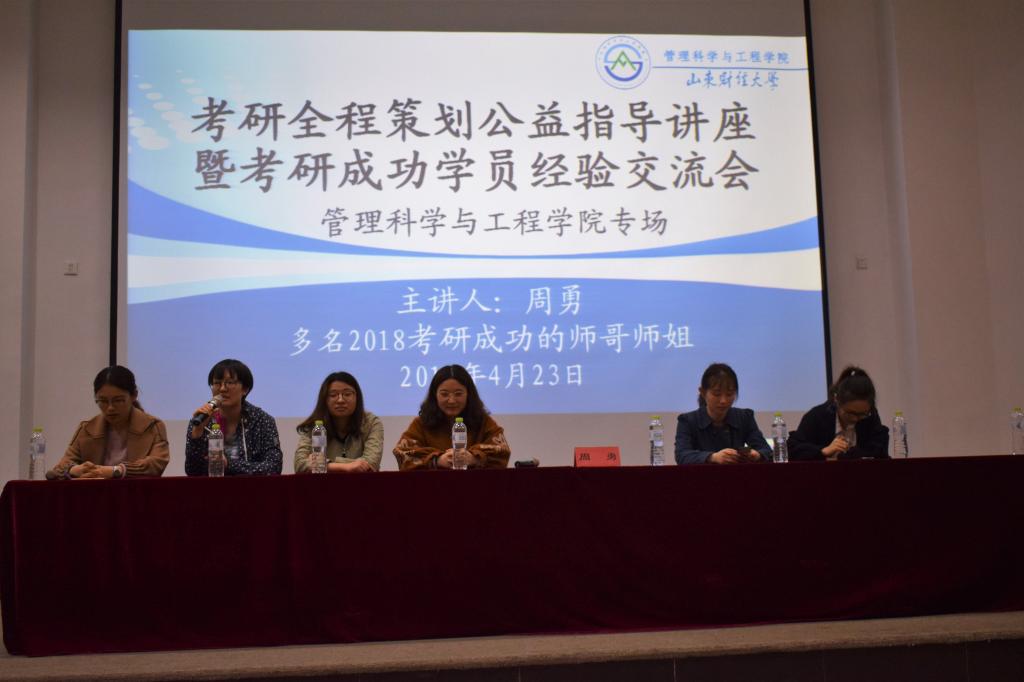 4月23日,我院于明水校区5201召开考研指导讲座暨考研成功学员经验交流会。本次讲座由全国著名考研指导专家、高联北京、山东执行校长周勇担任主讲,我院党委秘书、16级辅导员周广春担任主持。我院16级全体成员及17级志愿考研的同学到场聆听。