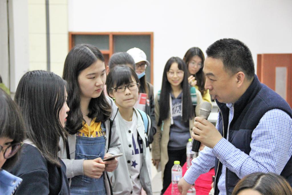 会上2018考研成功的学生分别从选择学校、考研必考科目、专业课三方面分享自己的成功经验。周勇以多年的执教经验从考研报名、考研初试、考研复试等方面展开详细的介绍,为准备考研的同学拨开迷雾指点迷津。针对考研专业的选择,周勇则依据各大学科的特点一一进行分析为同学们报考专业提供建议。周勇将考研学习规划分为预备、基础、强化、冲刺四个阶段,并在每个阶段制定不同计划,让同学们领悟高效备考、应试技巧从而进一步增强同学们考研自信心。讲座最后,周勇根据我院同学的提问有针对性的进行指导。