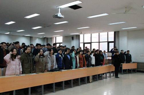 2018年1月4日,学院在明水校区组织“不忘初心,牢记使命,做新时代的新青年”主题团日活动。本次活动由学院团委书记张贞梅主持,学生会常委、学生会各部门负责人、16级和17级各班团支部书记、班长、组织委员、宣传委员及文艺委员到场聆听。