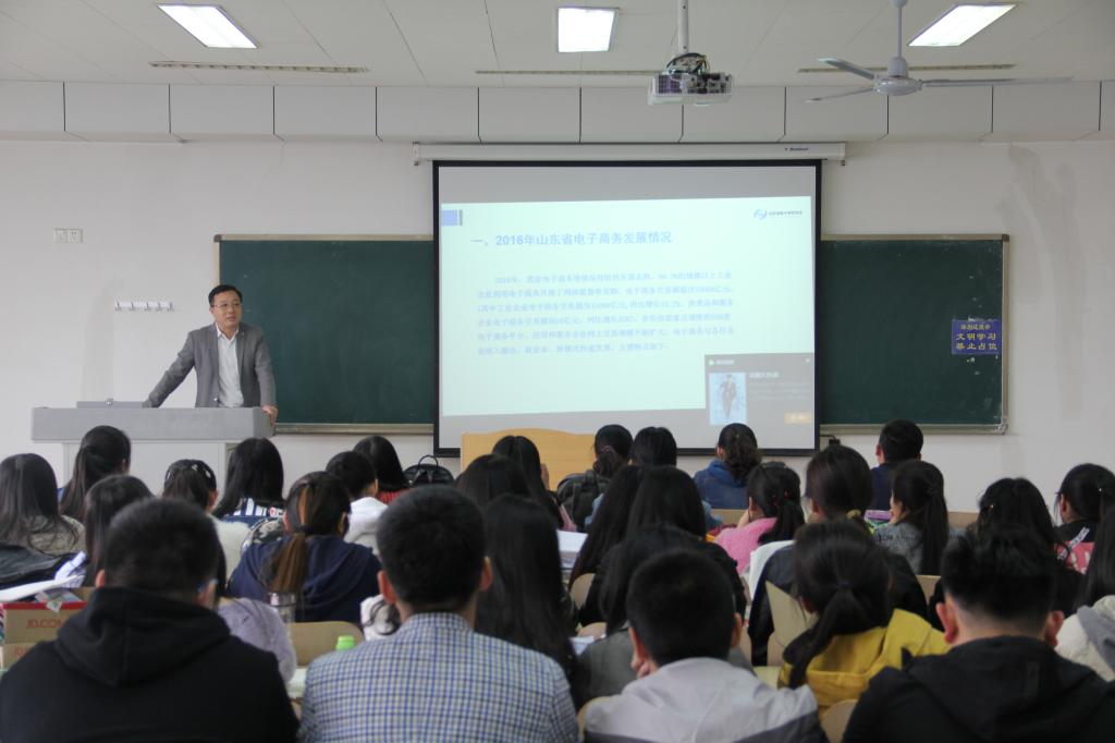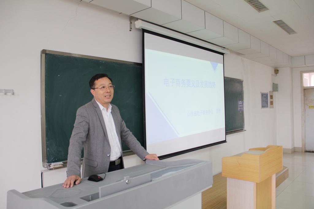 4月25日下午3点, 我院在燕山校区逸夫楼518举行电子商务报告。本次报告会由我院党委副书记徐世星主持,由山东省电子商务协会秘书长李俭主讲,我院14级电子商务专业全体同学参加。