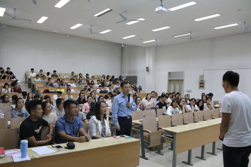 会议伊始,李攀峰首先介绍了近几年的就业环境。李总根据同学们的理解介绍就业形势概况,希望同学从“遵从喜好,遵从专业,从事公司主流岗位”三个方面选择职业。活动中李总重点介绍面试流程以及面试过程中容易出现的问题,与同学们互动,现场进行模拟招聘。这对学生如何实现成功应聘有很大帮助。最后,他围绕“如何完成从学生到员工的转变”这个话题,提出建议并希望同学们保持乐观积极的态度,提升综合素质与能力。
