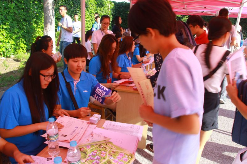 迎新现场,新生们在14级预备党员、15级入党积极分子、全体班团和迎新志愿者们的引导之下,依次完成了缴费、领取用品、入住宿舍等各项报到工作,一切都进行得有条不紊、井然有序。现场可以看到,从进入校门到报到现场,一路上都有工作人员来引导新生完成报到工作——礼仪姑娘们热情引导并讲解报到流程,班团们一丝不苟地收集信息,志愿者们也周到地提供拎包等服务,辅导员们在现场及时地进行疑难解答和统筹指挥……在新生报到的同时,我院也为前来送行的家长准备了专用休息区,一旁安放的宣传展板向家长和新生们详细介绍了学院专业的情况和师资配备,展现了丰富多彩的学团工作风貌,也展示了我院历届优秀毕业生的风采,极大地增加了家长和新生对学院的认同感和专业自信心。